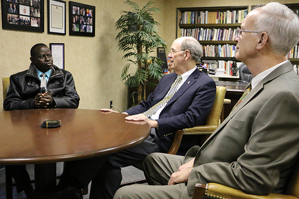 Rev. Roosevelt Goah brought greetings and gratitude from Liberia during a visit with Bishop John Hopkins and members of the East Ohio executive staff at the conference Area Center on October 28.