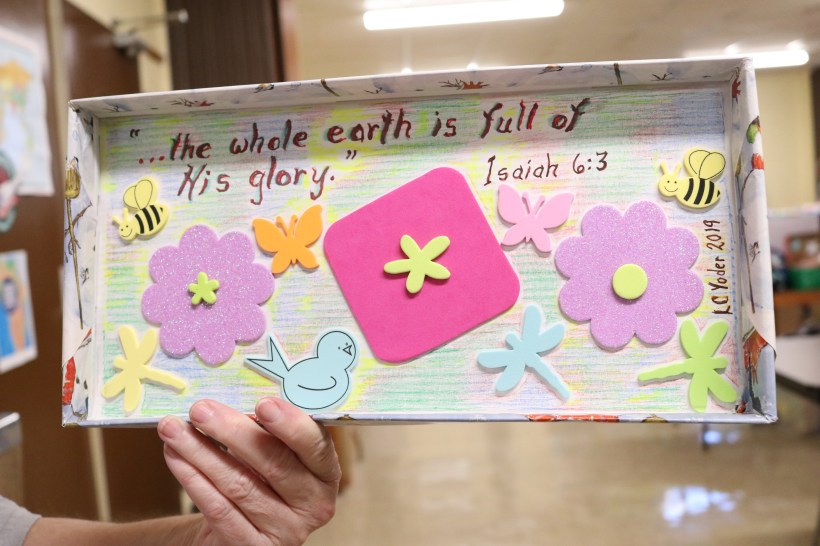 There are several within Greentown UMC who go above and beyond the call to ensure that all have a blessed Christmas. Lois, a woman in her 80s, decorates as many box lid interiors as she can with Scriptures, often pairing verses with images she can place onto the lids. Both of Moore’s daughters create what they call “theme boxes” complete with theme verses and positive encouragements for the boxes’ recipients.