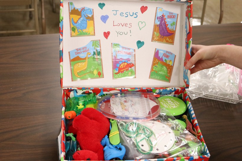 “What’s really cool about this is that it is a two-fold ministry,” Kathy Moore shared. “Operation Christmas Child provides these boxes filled with toys, school supplies and personal toiletries, but they also share the Gospel.”