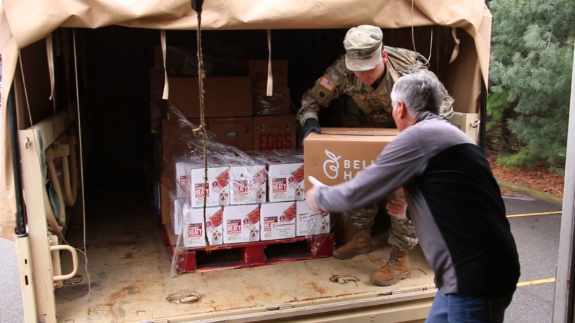 Sgt. Steven Patterson of the 1st Battalion of the 145th Armored Regiment of the Ohio National Guard explained the reason why the Guard is delivering food for the Foodbank.