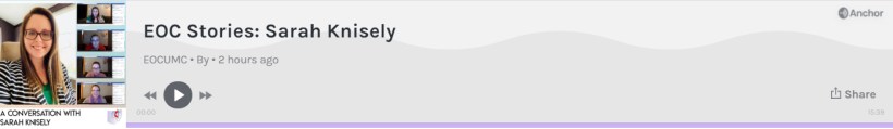 Recently I had the opportunity to interview Sarah Knisely, a licensed clinical counselor, mother and the wife of Steve Knisely – the senior pastor of First United Methodist Church of East Liverpool (Mahoning Valley District). During the current COVID-19 pandemic, Knisely has seen a great need to be a resource for people and their mental health. She has taken it upon herself to host weekly sessions via Facebook Live to help people work through their feelings of fear, doubt and anxiety, and how those emotions intersect with and inform their faith. Each session centers on one topic and combines time in Bible study, discussion and practical guidance in dealing with the challenges that that week’s topic brings into an individual’s life. Click the image below to hear the one-on-one interview with Sarah Knisely.