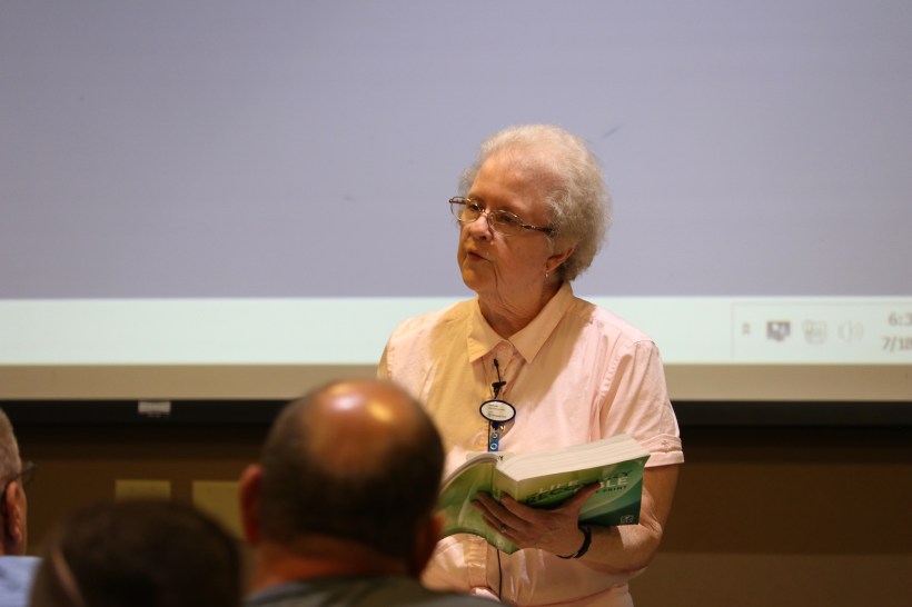 The service itself is rather simple and straightforward. Music lyric videos are streamed from YouTube starting around 6:05 p.m. as the women find their seats and the men finish their dinner in the cafeteria. At around 6:15 p.m. the service formally starts with a welcome and more music that has been largely requested by patients. Schenk takes prayer requests, offers a prayer, and then shares a sermon based in Scripture, encouraging the small congregation. On the night that I attended the service, a video was played that showed Susan Boyle’s judge-impressing performance on Britain’s Got Talent. In showing the video, Schenk was reminding group members that no one can tell them who they are, or that they are less than they are and are only their addiction. God loves them and only He can give them their value.