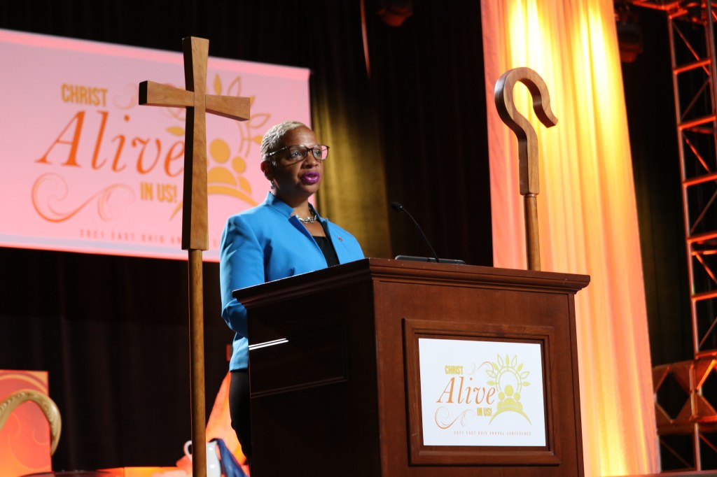 The Bishop addressed the “courage and resiliency” of East Ohio pastors, congregations, and faith communities in the ways that they responded to being church in new ways when the COVID-19 pandemic struck and she challenged them to continue moving forward in bold and courageous ways.