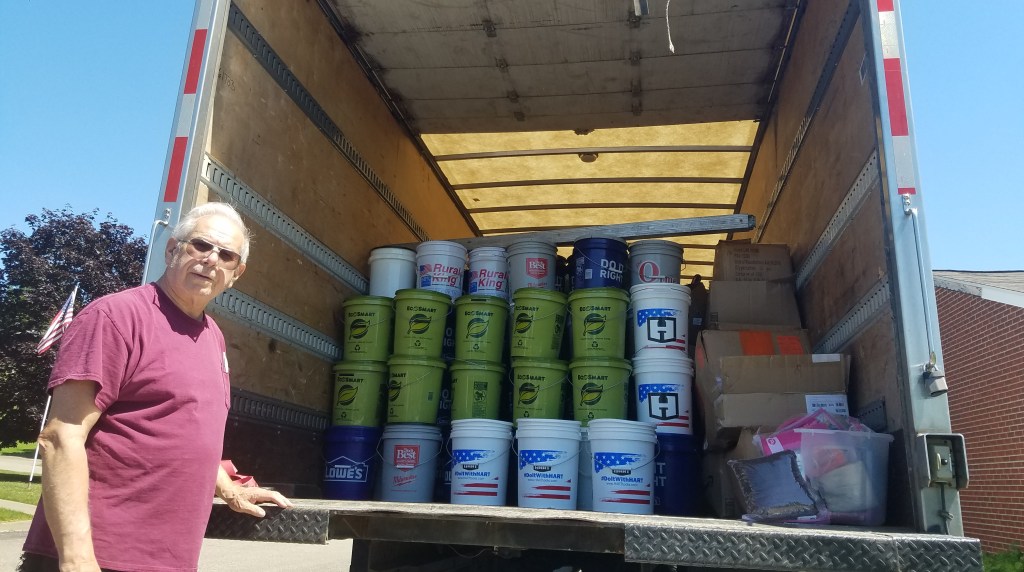 Jesus was clear we do not lose our reward for small gifts of kindness and helping others (Matthew 10:42 & 25:31-45). I am very grateful to Rev. Frank McAtee for driving June 14-15 as we picked up donations from many contributing churches. Thanks to all who brought items to the pickup locations and helped with loading the truck. The saying is worth repeating, “many hands make light work.” We appreciate the efforts at Carrollton First UMC, Boardman UMC, Mentor UMC, Strongsville UMC, Sandusky Trinity UMC, Family of Faith UMC in Akron, North Canton Grace UMC, Mt. Gilead UMC, and Coshocton Roscoe UMC. When we returned to Old Washington UMC, the truck was nearly full. Last year the summer collection was just over one ton. This year we exceeded seven tons of buckets, kits, and other useful donations!