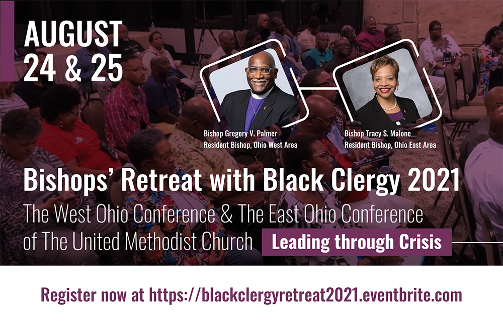 The Bishops’ Retreat with Black Clergy begins on Tuesday, August 24 with a session from 9:00 a.m. until 12:00 noon. That evening from 5:00 – 6:30 p.m. a virtual social gathering is scheduled that will feature a dessert cooking demonstration and virtual trivia. The retreat will conclude on Wednesday, August 25 with a session from 9:00 a.m. until 12:00 noon. Each day will begin with worship, led by the East Ohio Conference on Tuesday and the West Ohio Conference on Wednesday.
