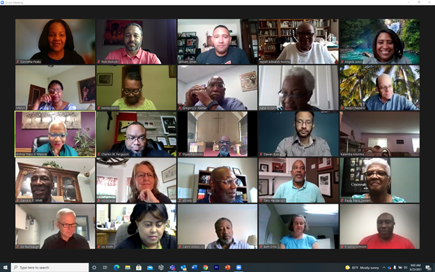 The Bishops’ Retreat with Black Clergy returned in a new way August 24-25. The 60+ participants from the East Ohio and West Ohio Conferences of The United Methodist Church formed a virtual community on Zoom amidst the ongoing COVID-19 pandemic to fellowship, worship, and learn together around the theme Leading through Crisis.