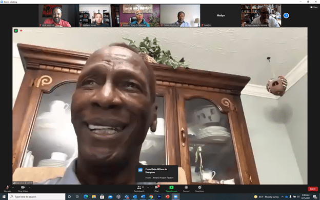 Participants missed being together in-person, but they were still able to fellowship virtually thanks to creative thinking by Jones and Peaks. Day one ended with an online cooking class taught by Chef Rasul Welch of Farmer’s Feast. Clergy were provided the recipe in advance so that they could have the ingredients on-hand as they followed Welch’s instructions. Then it was time to test their knowledge with a trivia contest led by Ryan Gohmann of Cleveland Awesome Trivia.