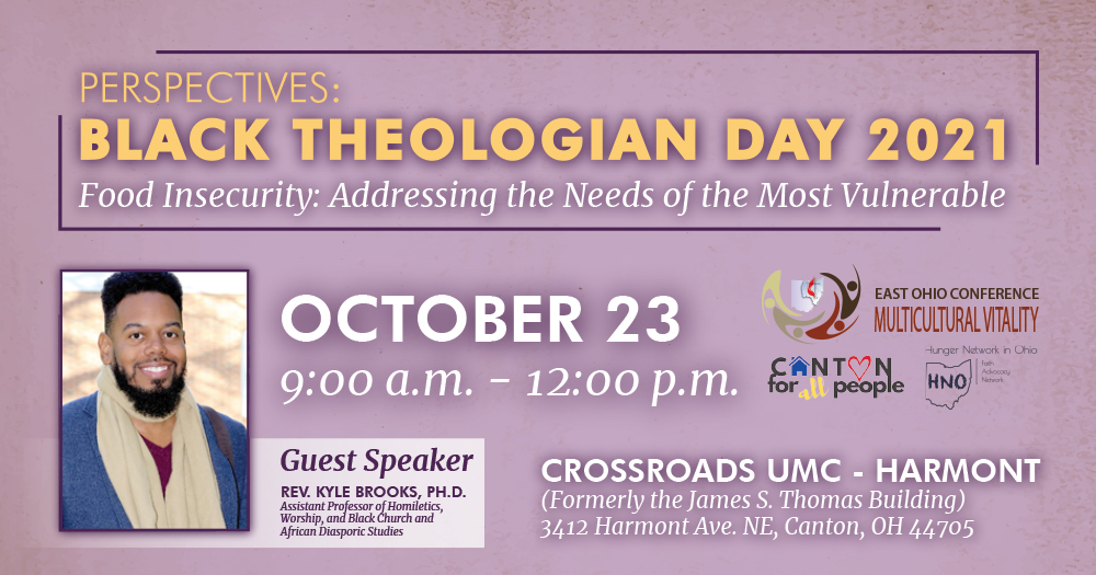 Perspectives: Black Theologian Day is Saturday, October 23 from 9:00 a.m. – 12 noon at Crossroads UMC – Harmont in Canton, located in the former James S. Thomas UMC building at 3412 Harmont Ave. NE.