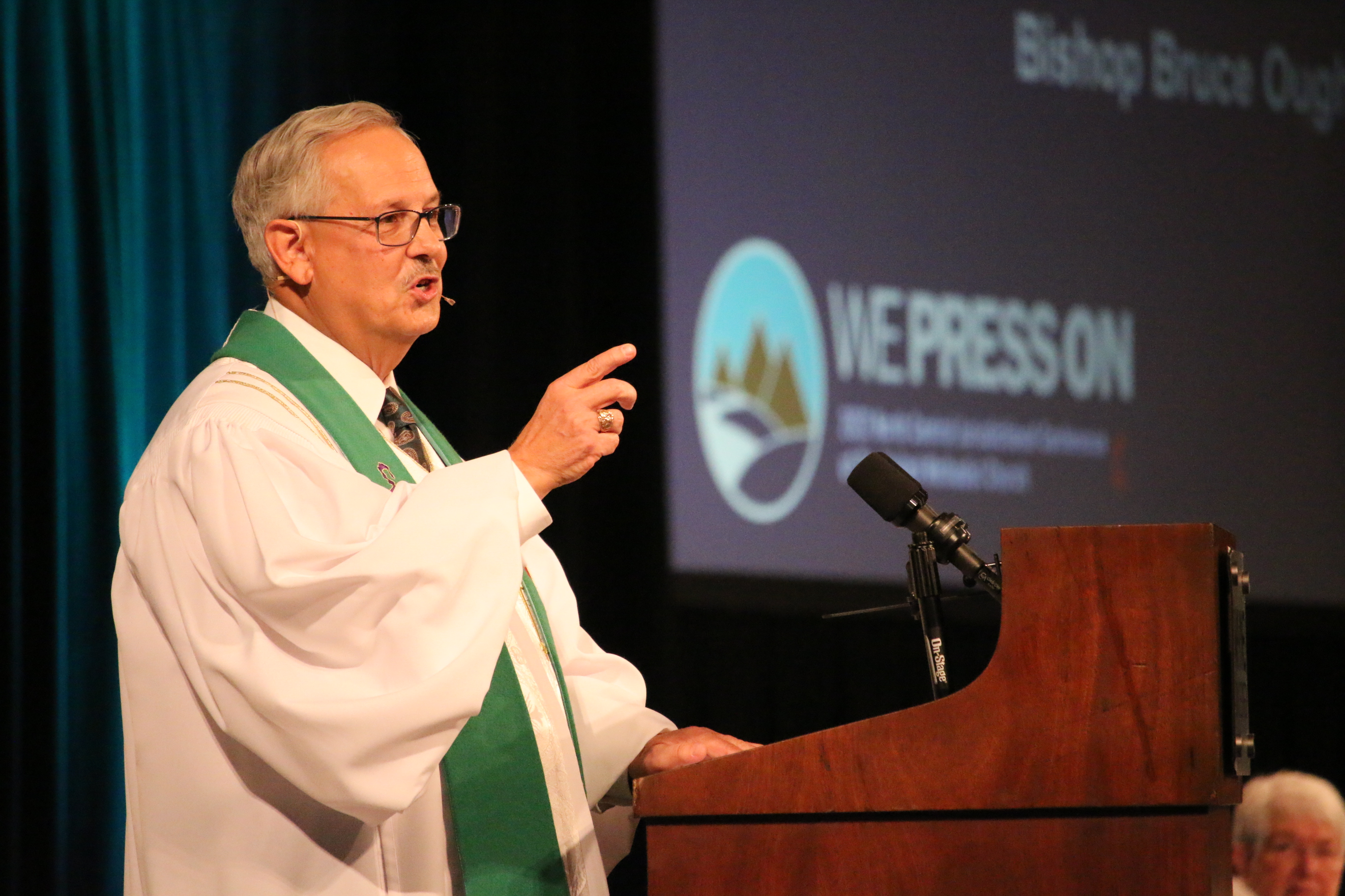In his opening service message “God Has Us Right Where God Wants Us,” retired Bishop Bruce Ough spoke from Ezekiel 37:1-14, The Valley of Dry Bones.