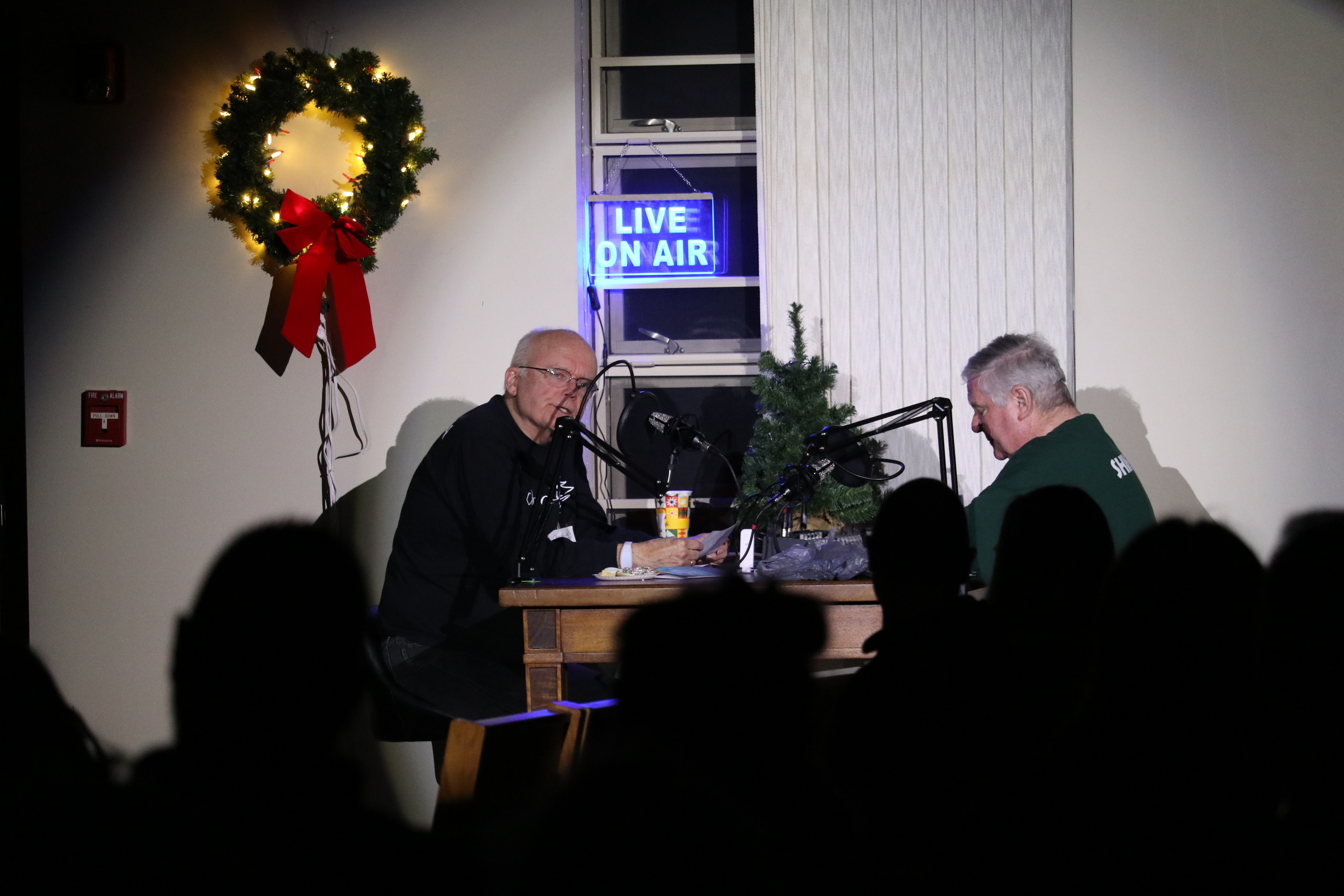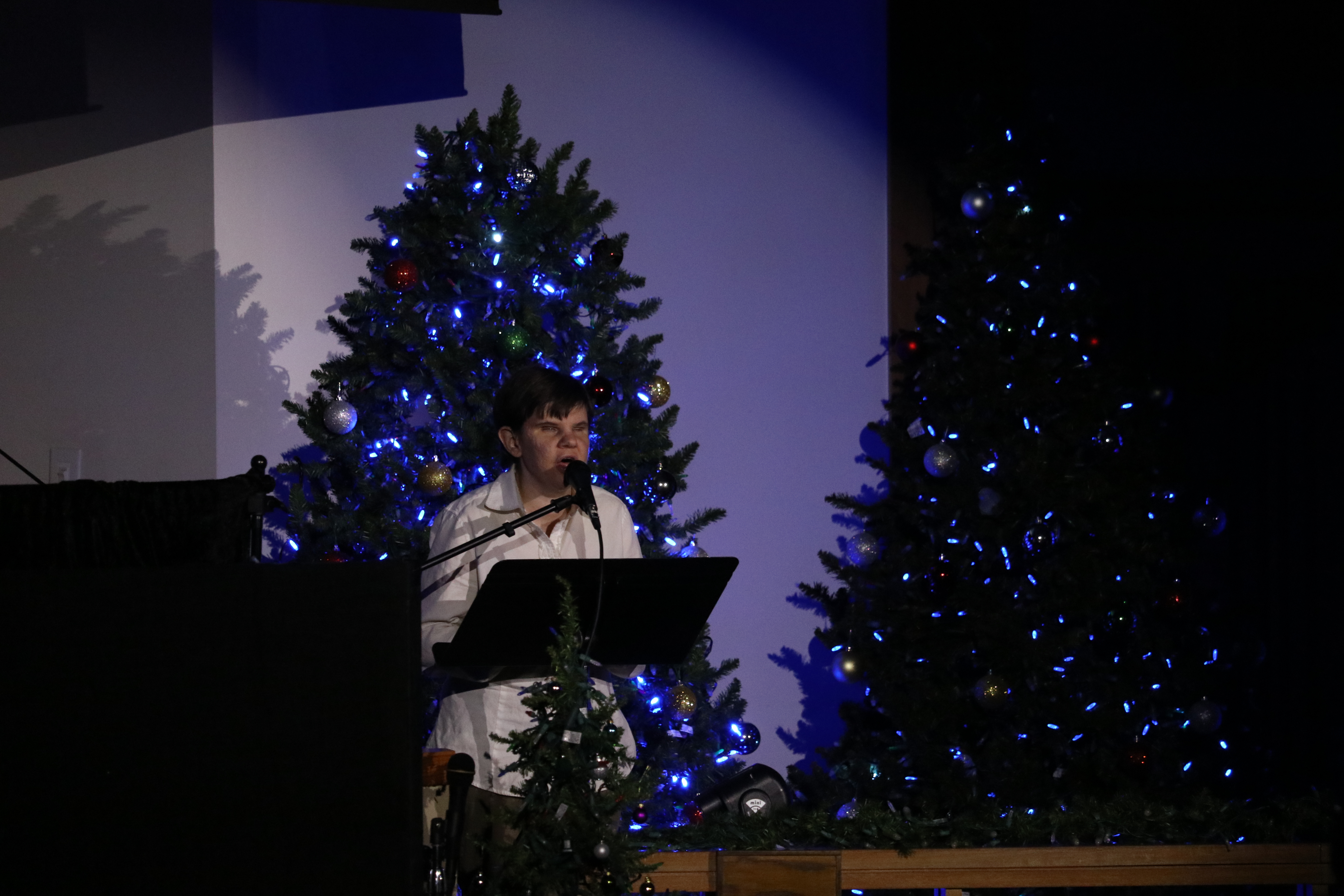 Every year between Thanksgiving and New Year’s the church hosts a repeating outdoor light show that people can enjoy from their cars every night of the week. On the four Sunday evenings of Advent (those Sundays between Thanksgiving and Christmas) the church offers a free evening program indoors that includes two nearly hour-long segments featuring lights, music, puppets, an on-stage radio broadcast, live music and more. During the time the program is taking place in the church sanctuary, the rest of the building is buzzing with people playing games, making crafts, eating snacks, taking pictures in the photo booth, and more – all staffed by church members who volunteer their time to meet and get to know ChurchLight visitors.
