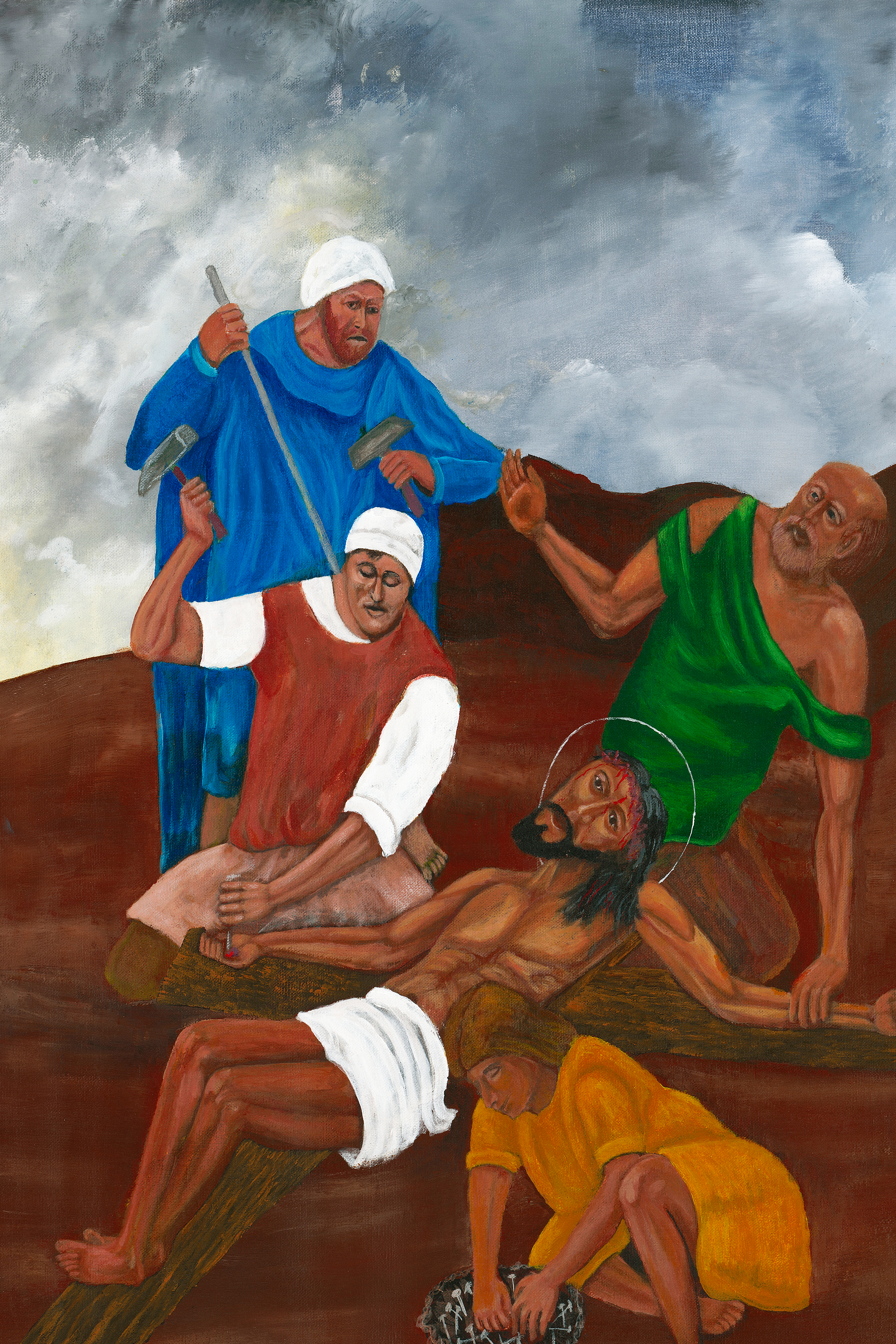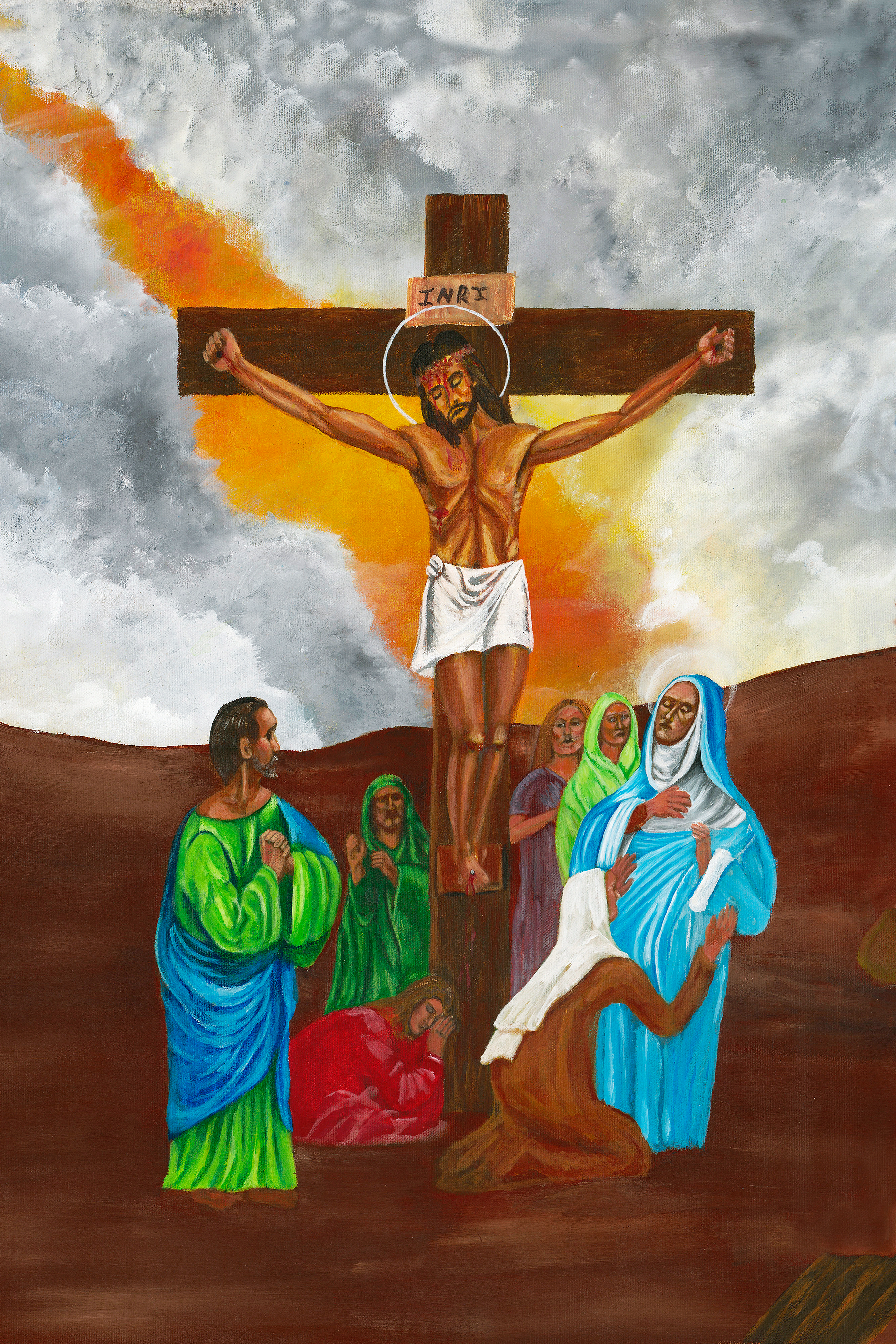 The Multicultural Ministries office has obtained a one-of-a-kind Stations of the Cross exhibit featuring artist renderings of the events leading to the crucifixion of Jesus Christ. The paintings of the 14 traditional stations of the cross, plus an additional print entitled “Jesus Ascends into Heaven”, were created during Lent 2019 by death row inmates at the Riverbend Maximum Security Institution in Nashville, Tennessee.