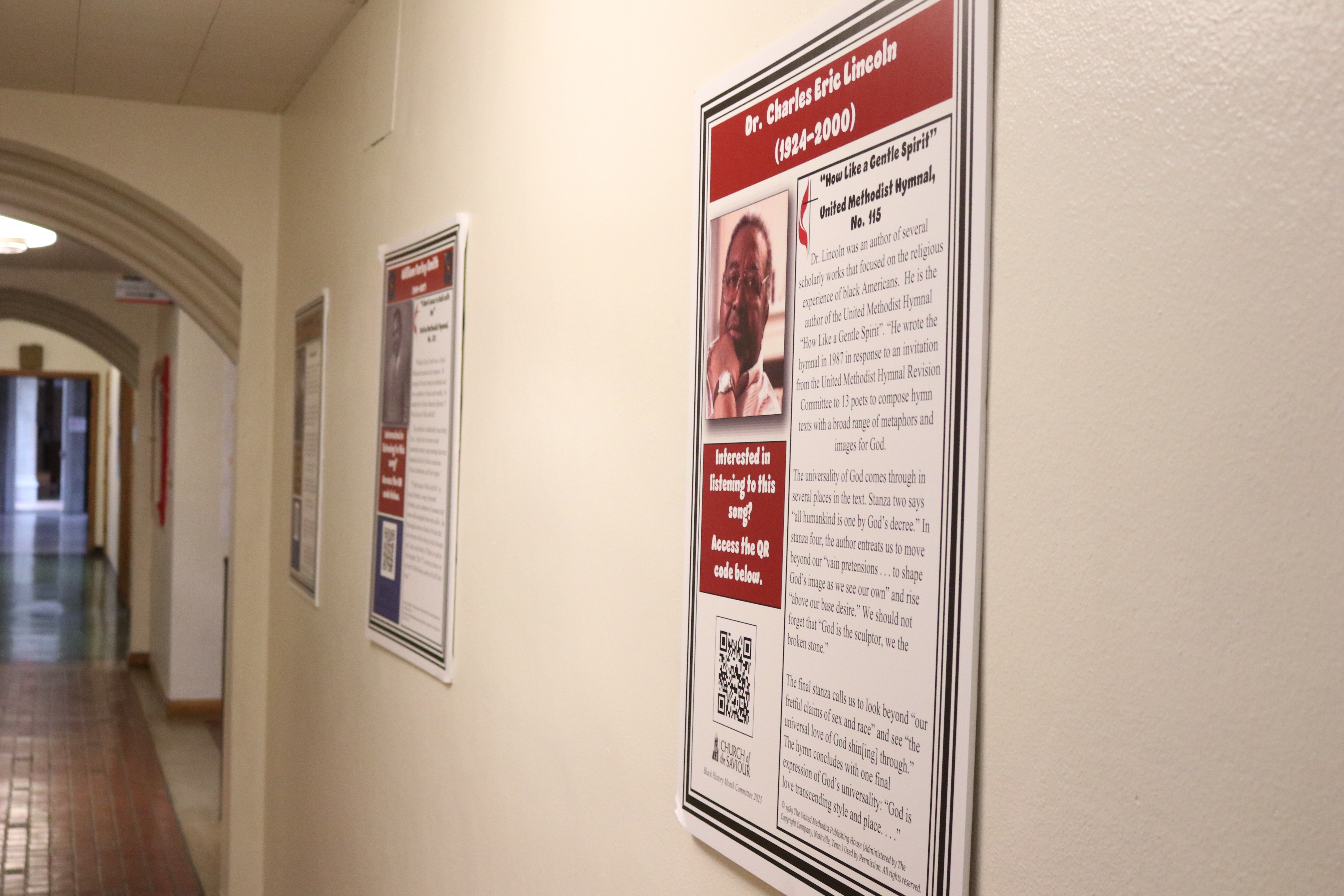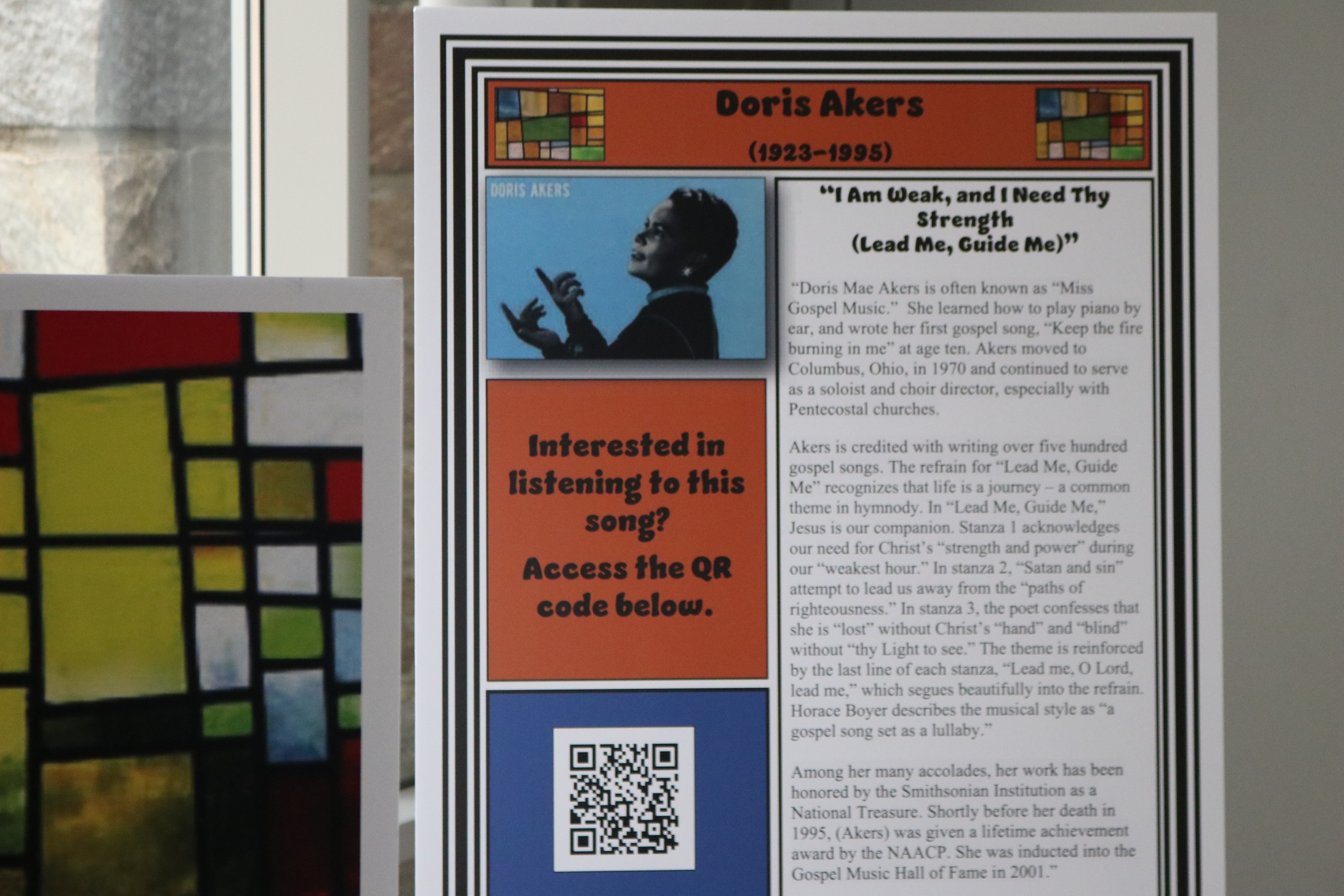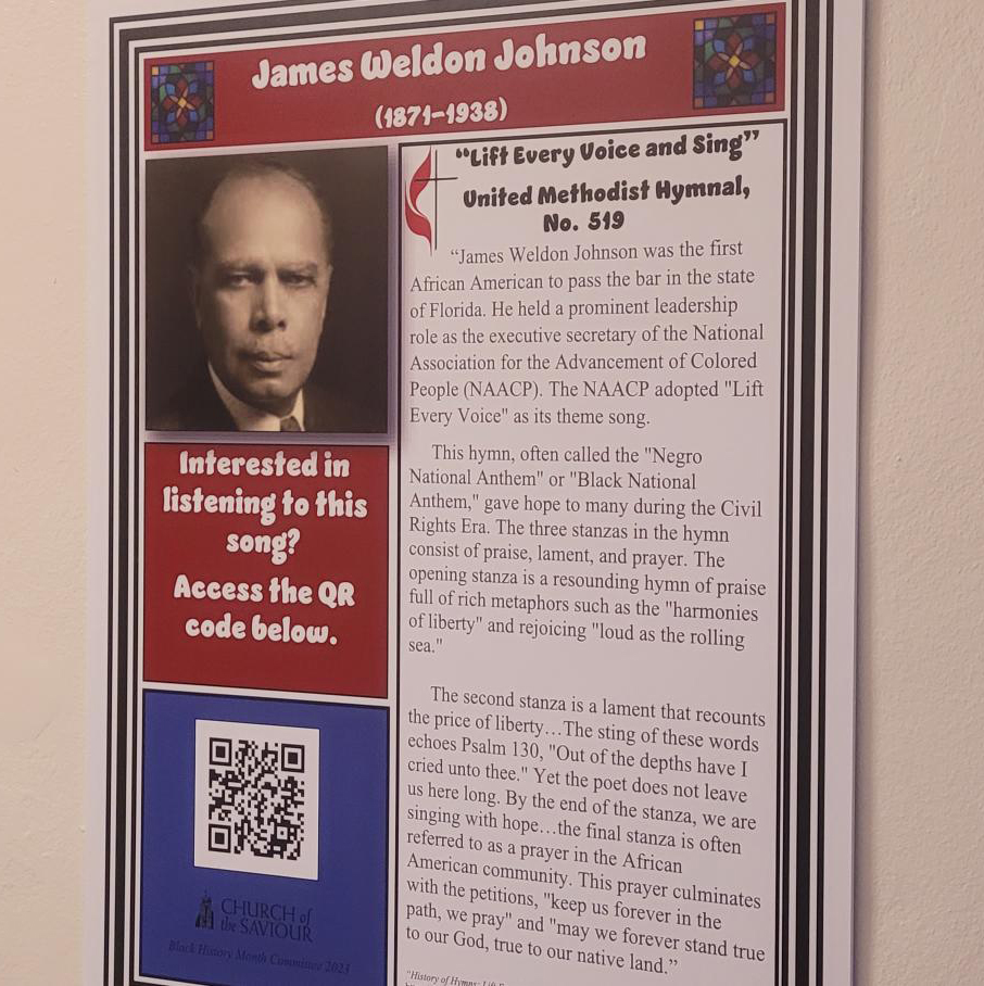 Shelton-Wheeler is one member of a committee responsible for deciding how Church of the Saviour UMC (North Coast District) would create opportunities to share about Black history throughout February. The Hymnal Walk that the committee decided upon featured 13 large poster-sized boards that displayed a photo of a Black hymn author, their hymn, background information on the author and their hymn, and a QR code that once scanned allowed individuals to listen to the hymn. The boards were hung on the main hallway of the building, inviting church members and guests to stroll along the path and learn more about each hymn one at a time.