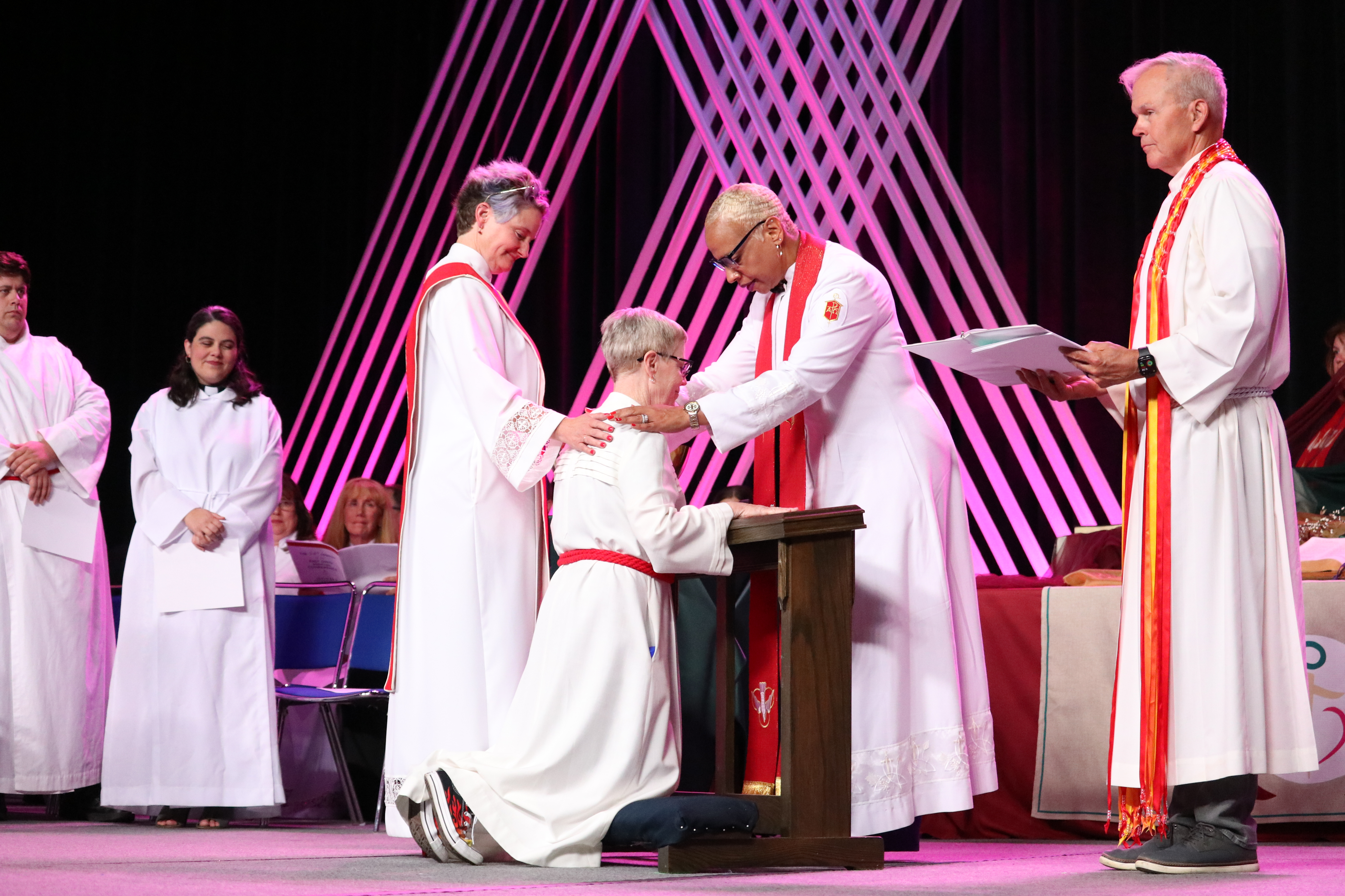 “You do have to find your way. We’re here to get you on that way, but you’re going to have to find your way. You’re stepping into a tradition, and that’s important but that doesn’t mean your steps are directed for you. The history of the church, what we impart to you now, it’s important but history books are not blueprints or road maps. We need you to forge new paths, and we need you to build bridges that will allow people to actually follow you. We need you, friends, to pick up your mantle. We need you to be faithful. We also need you to surprise us. We need you to pick up a mantle, and we pray that you will be blessed as you are, and, in who you become. Amen.”