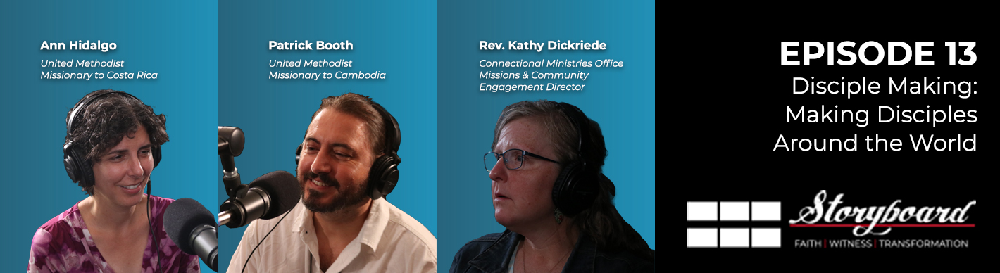 Episode 13 is titled “Disciple Making: Making Disciples Around the World”. The episode features conversation with two UMC missionaries, one returning from teaching in Costa Rica and one currently serving victims of human trafficking in Cambodia.