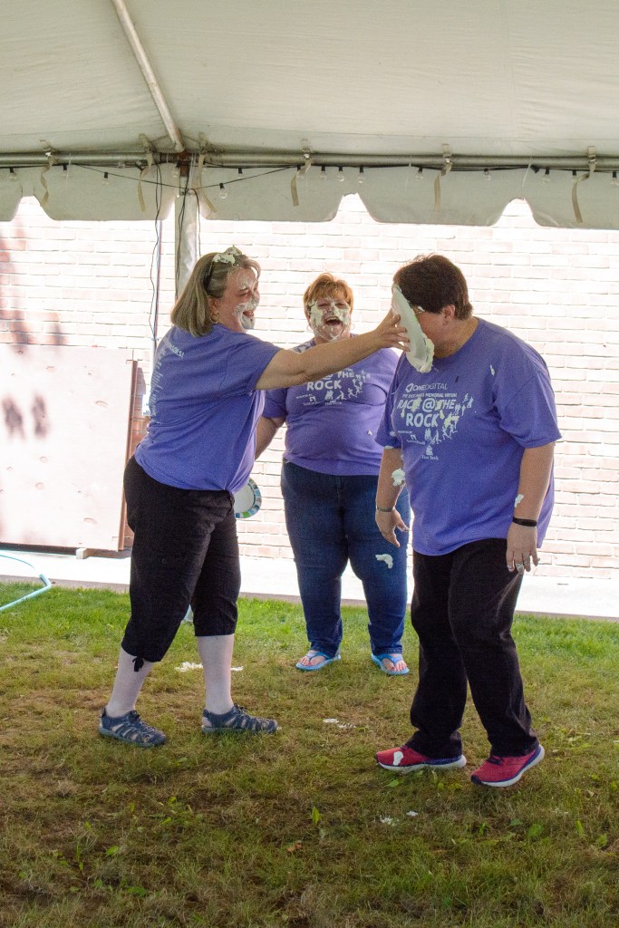 Pastor Pamela “Pastor P.” Sayre and members of the congregation from Huron United Methodist Church welcomed Pastor Robin Dillon and folks from Lakewood United Methodist Church on Saturday, August 13 for lunch and a celebration. Following the announcement for The Dick Parks Memorial Race at the Rock, Pastor P. and Pastor Robin challenged each other to a fundraising competition to see who would take home The Dick Parks Fundraising Award for 2023, the loser would be taking a pie to the face. Their congregations stepped up to the challenge and raised a combined total of over $15,000 for Flat Rock Homes. Huron United Methodist Church took home the trophy raising over $8,000 on its own, earning Pastor P. the joy of pieing Pastor Robin. They worked so hard that Flat Rock Homes President & CEO, Karen Kilgo, also stepped up to the challenge and took a pie for the team! They have already issued the challenge for the 2024 event and encourage others to follow their lead reports Meg Larkin-Downing, Marketing manager and executive assistant to the President/CEO of Flat Rock Homes. In the photo above Flat Rock President/CEO Karen Kilgo pies Pastor P. as Pastor Robin looks on, ensuring that everyone involved got in on the fun for a good cause.