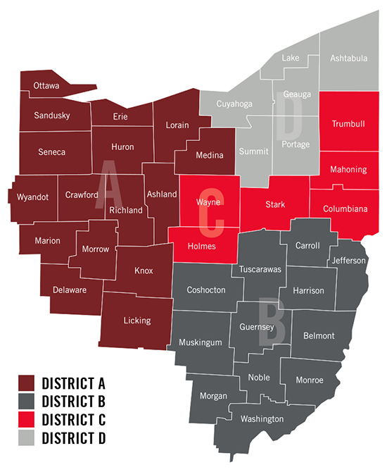 New district boundaries were created with a focus on mission. In most cases, all East Ohio Conference churches in a county are in the same district. But in a few cases, because of mission, a church in one county has been placed into the district of a neighboring county.