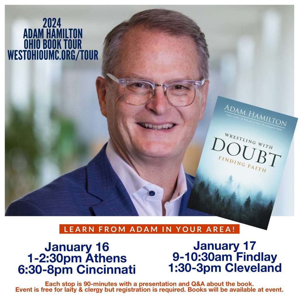 Rev. Adam Hamilton is coming to Strongsville UMC January 17, 2024, to promote his upcoming book, Wrestling with Doubt, Finding Faith. This is an incredible opportunity to learn from a successful author of church resources and pastor of one of the most influential churches in America, The United Methodist Church of the Resurrection in Kansas City.