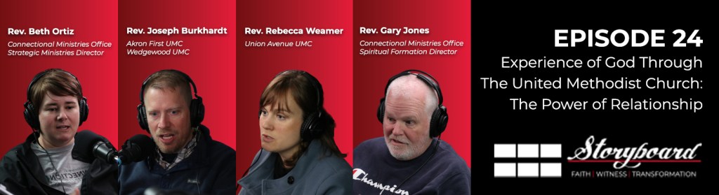 Episode 24 is titled “Experience of God Through The United Methodist Church: The Power of Relationship”. The episode features conversation with East Ohio Conference clergy who share personal stories of experiencing God through the people of United Methodist congregations, the impact of relationships in those experiences, and the importance of local churches committing to being spaces where people can meet God in unique ways.