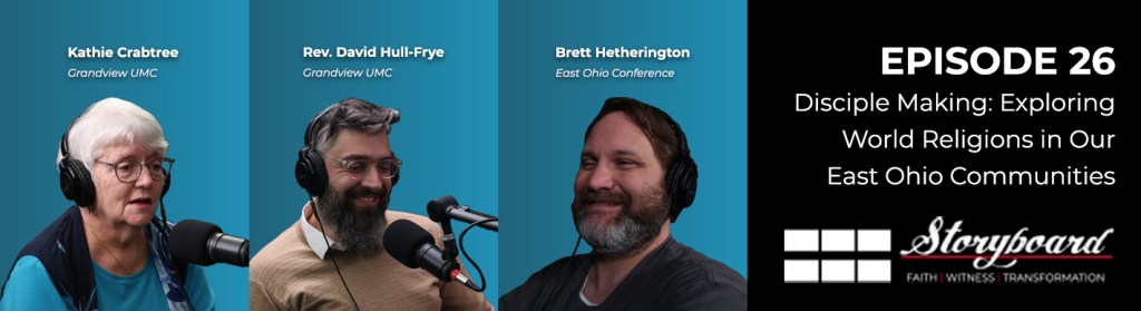 Episode 26 is titled “Disciple Making: Exploring World Religions in Our East Ohio Communities”. The episode features conversation with Rev. David Hull-Frye and Kathie Crabtree from Grandview UMC about how the church is embracing the shifting demographics of Cuyahoga Falls and offering church and community members safe space to listen to one another and learn about their different religious practices and beliefs.