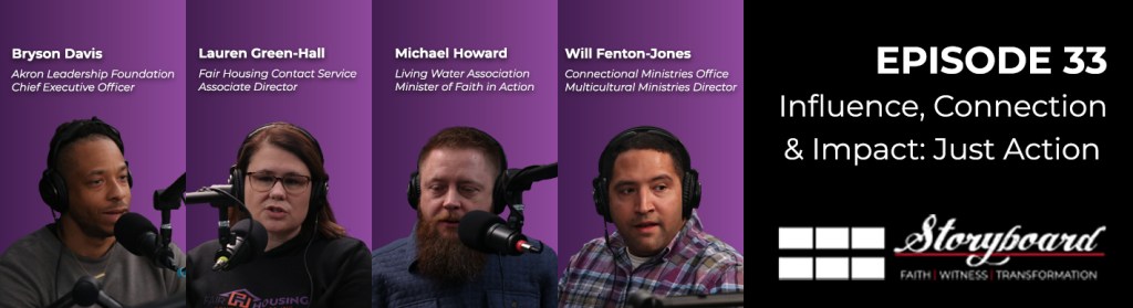Episode 33 is titled “Influence, Connection & Impact: Just Action”. The episode features an ecumenical panel of clergy and laity discussing ways that churches and faith communities can respond to the ongoing negative legacy of redlining that, generations since its inception, continues to impact who can live where in communities throughout the East Ohio Conference.