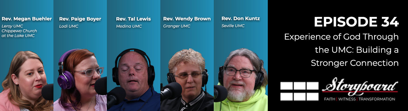 Episode 34 is titled “Experience of God Through the UMC: Building a Stronger Connection”. The episode features a discussion with clergy from churches in Medina County who are living into the connection of The United Methodist Church through partnering to frame a home for Habitat for Humanity and working together to connect with and support families in their local school districts.