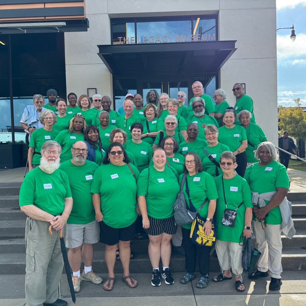 Last month, friends from East and West Ohio Conferences traveled to Montgomery, Alabama for the “Micah 6:8 Love Your Neighbor Tour.” The group toured The Legacy Museum for an immersive journey through American history viewing it from the perspective of black and brown sisters and brothers.