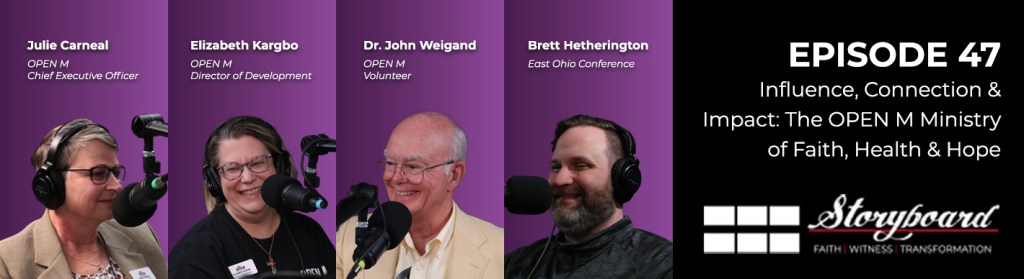Episode 47 is titled “Influence, Connection & Impact: The OPEN M Ministry of Faith, Health & Hope”. The episode features a conversation with staff members and a volunteer physician of OPEN M, an East Ohio Conference Advance Special that annually serves more than 65,000 residents in South Akron. The ministry partners with churches, businesses, and thousands of volunteers to provide pathways out of poverty by feeding the hungry and offering health and employment services.