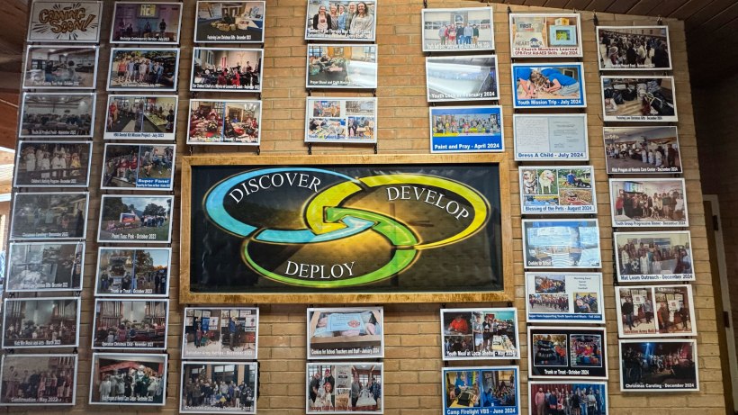 Service is at the core of almost everything the Dover First UMC youth ministry does. There is a wall in the building that is full of pictures from events and projects the youth ministry has taken part in or led, sharing their servants’ hearts with everyone who walks by. Some of the events are large, such as a work project that was undertaken while at YOUTH 2023. Many others are smaller in scope and closer to home like serving at the care home next door to the church.