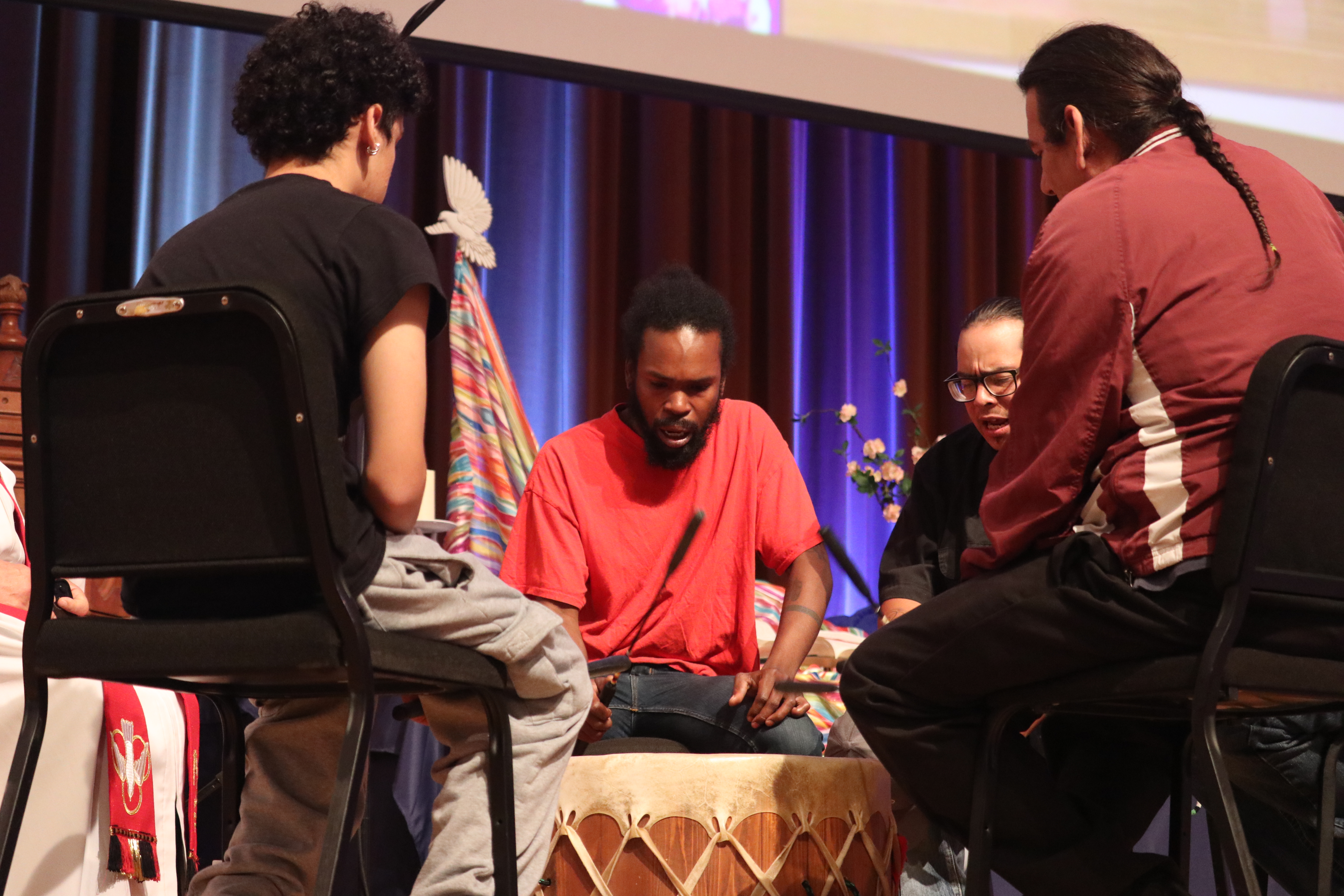 Annual Conference 2025 began with a drum ceremony by the indigenous group Gray Cloud Singers from Schuylkill County, Pennsylvania followed by the traditional reading of our East Ohio Conference Land Acknowledgment, which reads in part: “We, the people of the East Ohio Area of The United Methodist Church, wish to acknowledge that our communities have been built on lands that many indigenous people once called home. We pay our respect to the Lenni-Lenape, Wyandotte, Shawnee, Seneca, Cayuga, Ojibwa and Odawa peoples who lived in this area when settlers first arrived, and who were forced to relinquish their lands to the United States through a series of treaties, culminating in the Treaty of Greenville.”