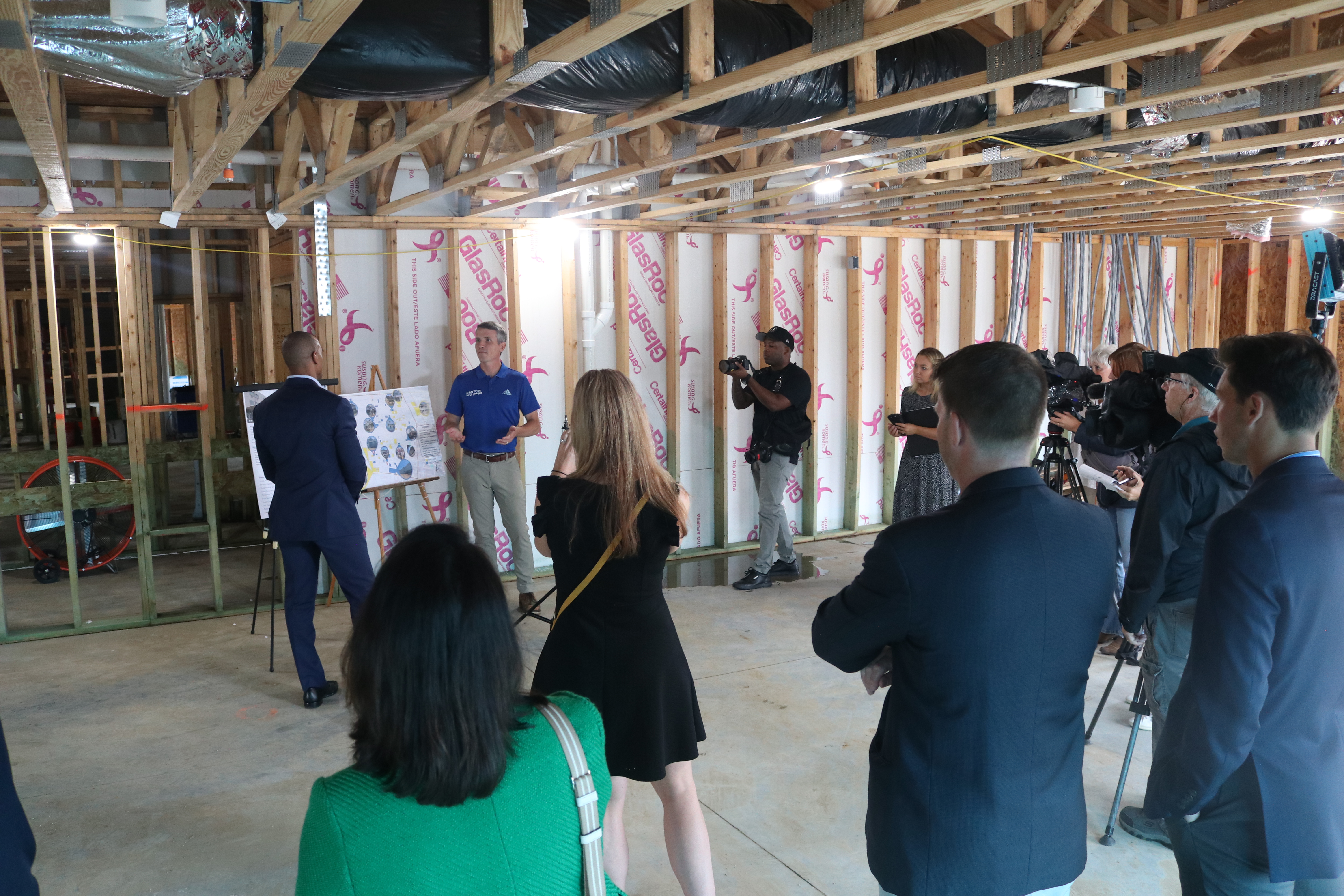 The tour started in one of the newly constructed homes, allowing all the visiting delegation to see the craftsmanship that is being put into each of the homes. The average cost for the homes that Canton for All People is building is approximately $215,000. The national median for home price is $435,000. Ackerman shared with a surprised delegation one of the ways they can make that possible.