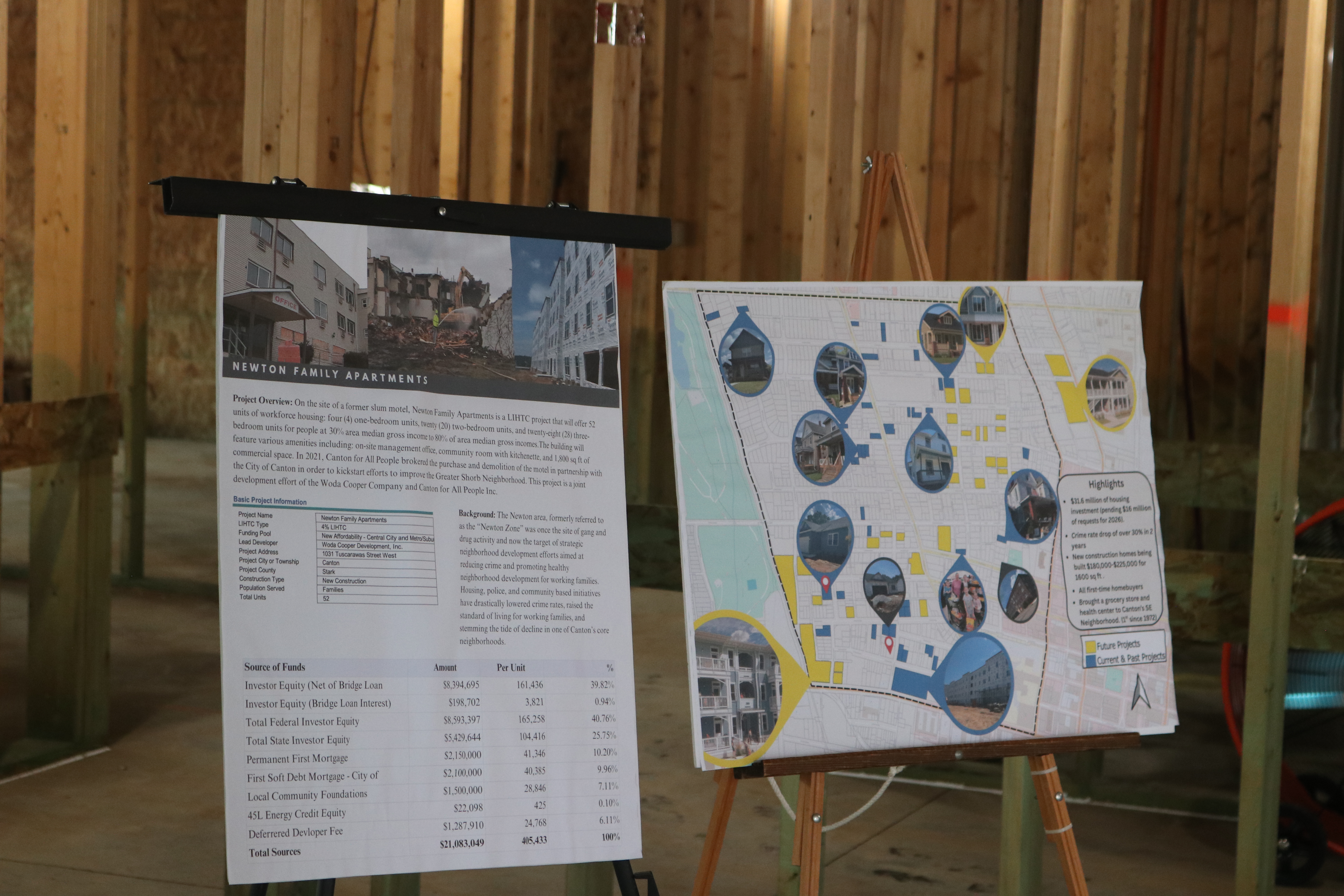 The tour then moved to Newton Family Apartments, a new apartment building being built on the former site of the Canton Inn. The site was once a haven of drug use, trafficking and prostitution. But since the demolition and the beginning of construction Ackerman shared that they have seen crime rates drop 30% in that two-year period.