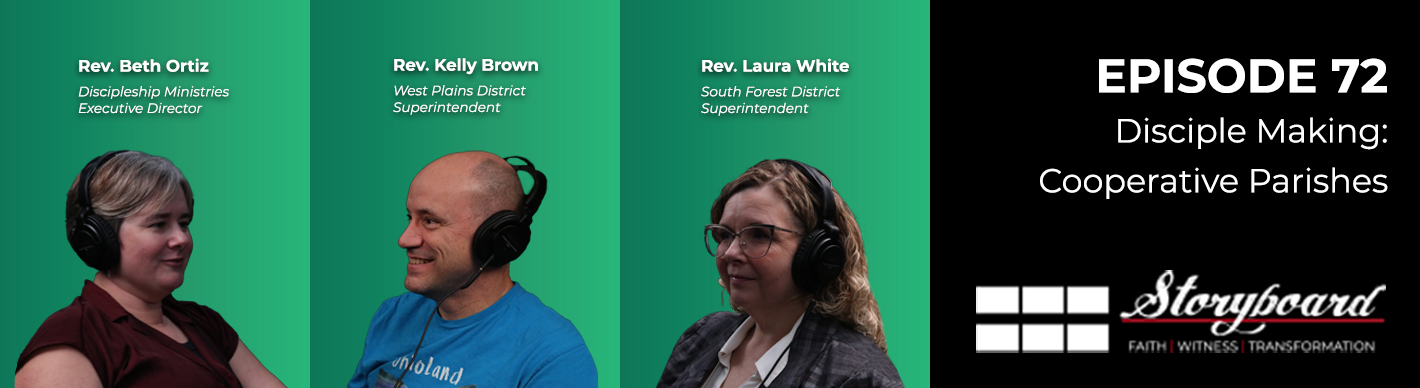 In Episode 72 “Disciple Making: Cooperative Parishes” Cabinet members Rev. Laura White, Rev. Kelly Brown, and Rev. Beth Ortiz share how cooperative parishes – churches grouped together as a missional unit – model the connectional DNA of The United Methodist Church.