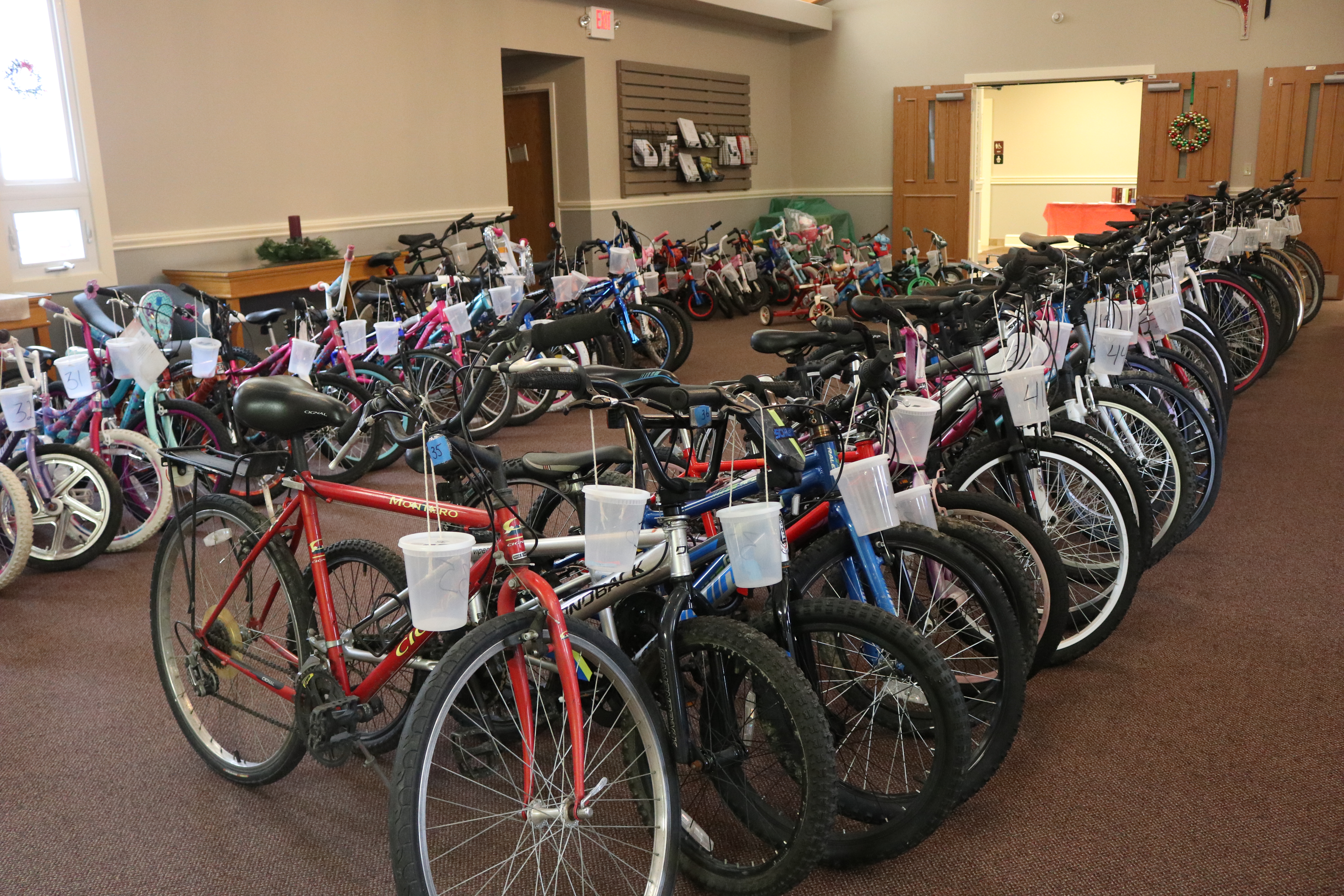 “The donations have been great, so overwhelming. People have been so generous. We did not buy any of this,” said Lori Maloney of Saint Barnabas Catholic Parish. She assured that those who did not win the raffle for the bike did not leave empty-handed, saying, “We give them coupons for a free bike come spring.”