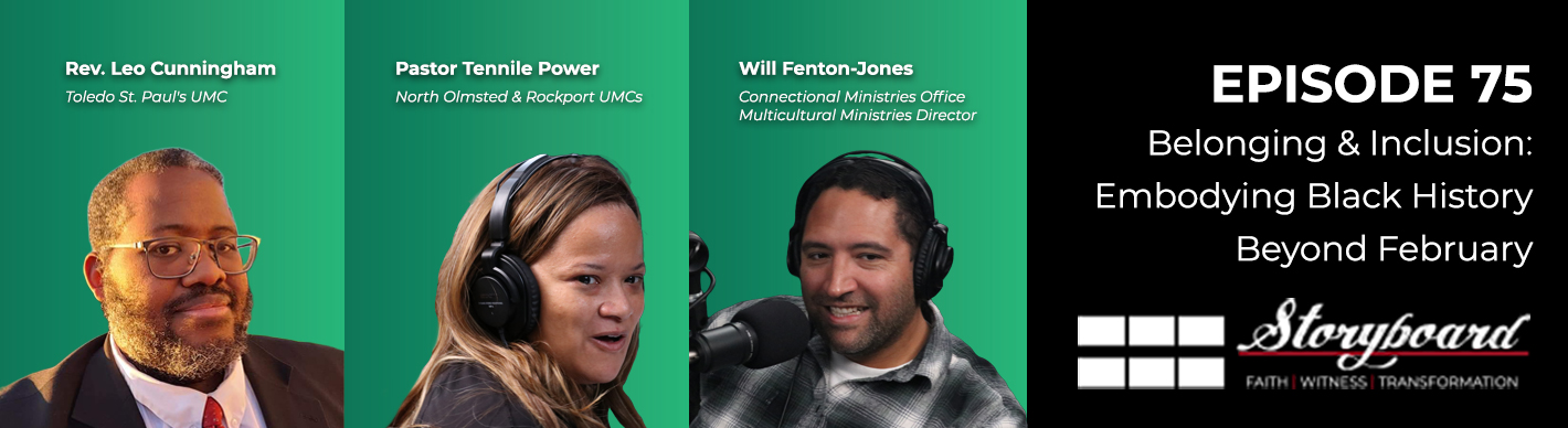 Episode 75 “Belonging & Inclusion: Embodying Black History Beyond February” is a conversation with Rev. Leo Cunningham of Toledo St. Paul’s UMC, Pastor Tennille Power of North Olmsted and Rockport UMCs, and Multicultural Ministries Director Will Fenton-Jones.