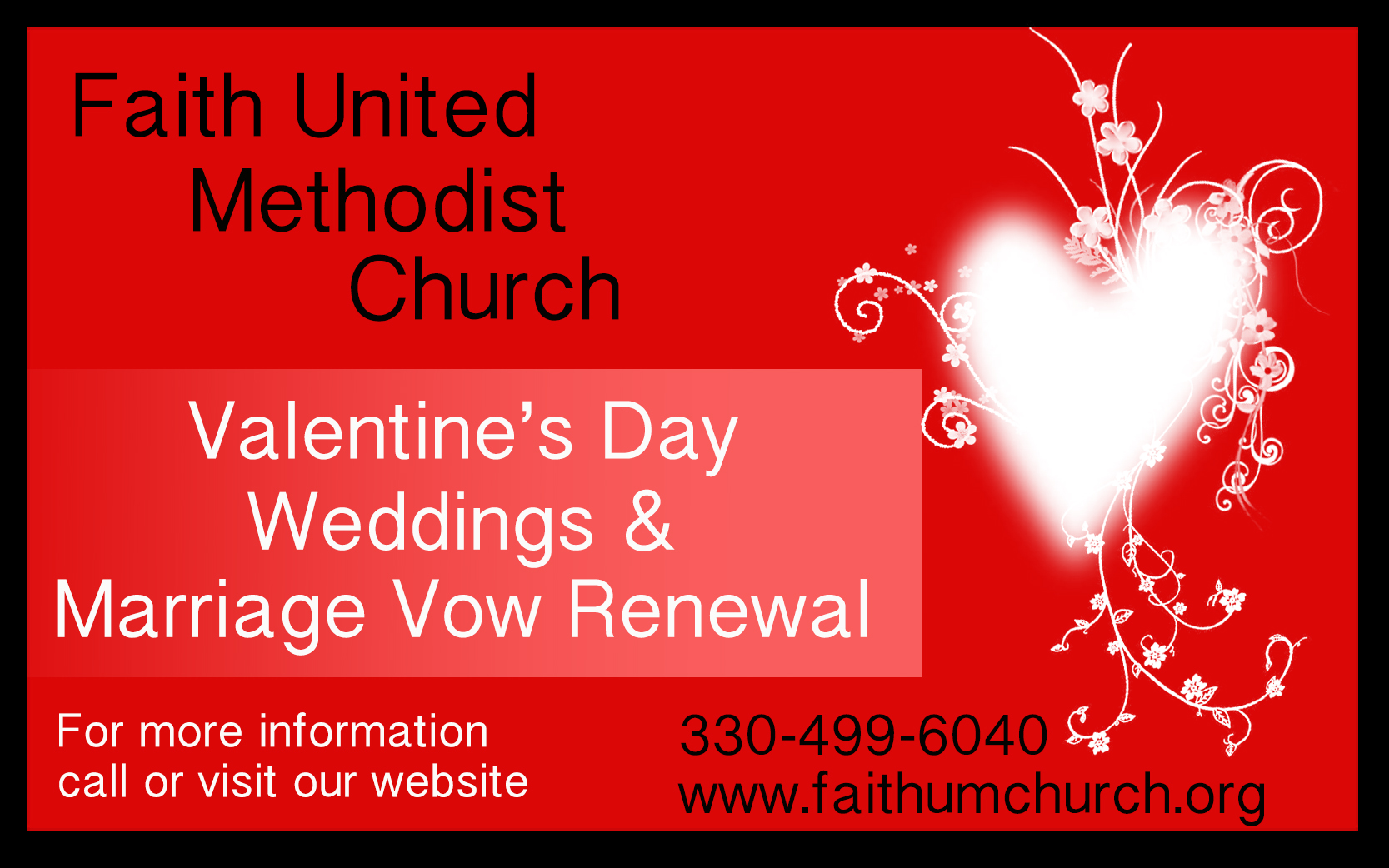 Valentine’s Day is fast approaching. Those looking to marry on the special day will have the opportunity to do so at East Ohio Conference United Methodist Churches on February 14.
